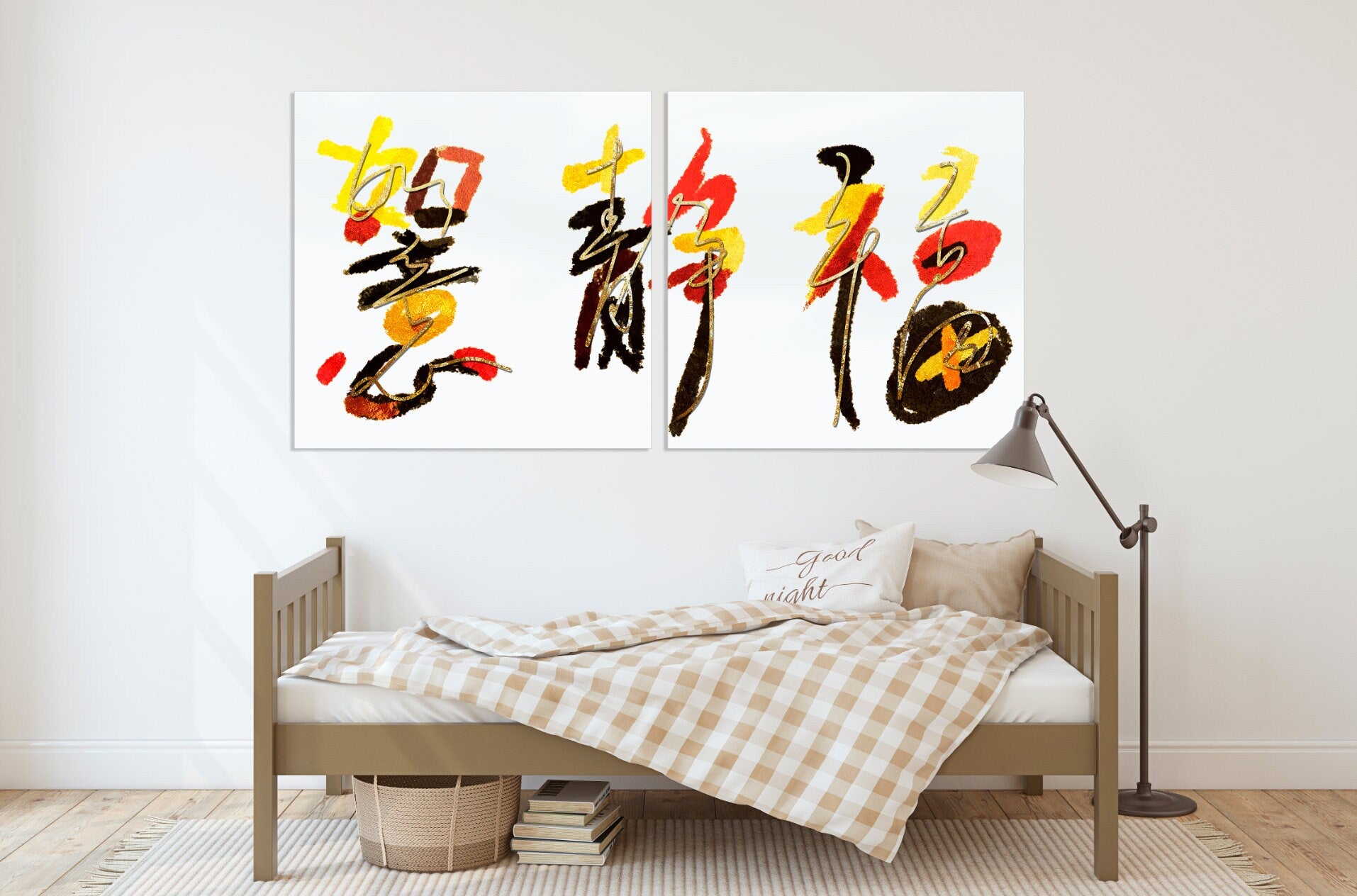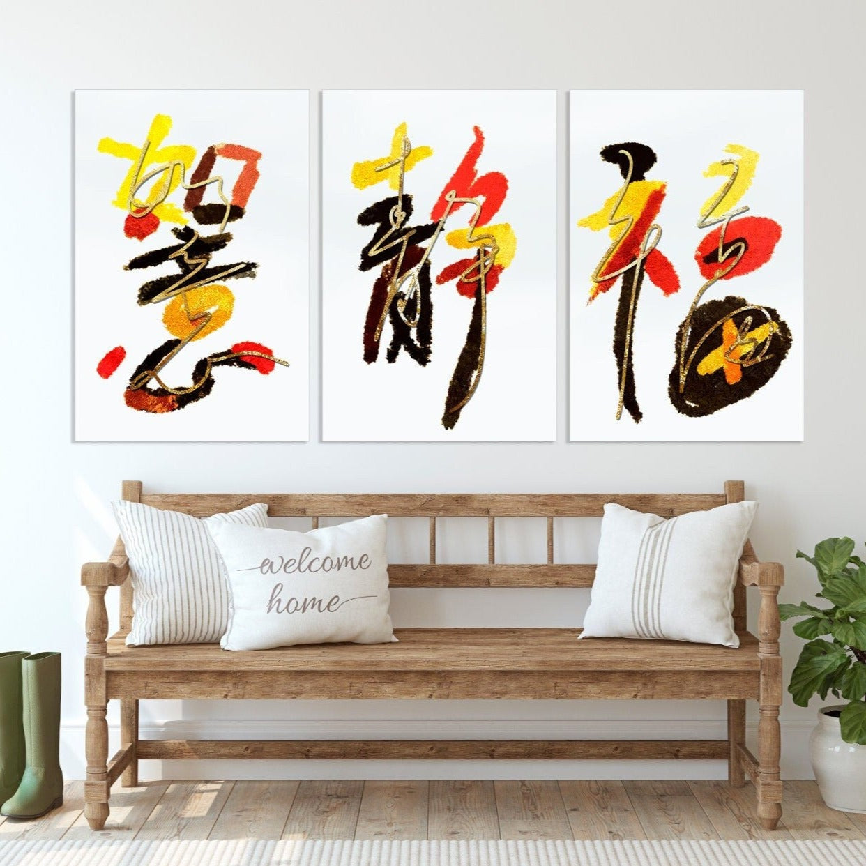 Japanische Wandkunst Asiatische Wandkunst Chinesische Wandkunst Leinwandgemälde Großes Panel Wandkunst Bilderrahmen Home Wanddekoration 3-teiliger Rahmen Leinwand