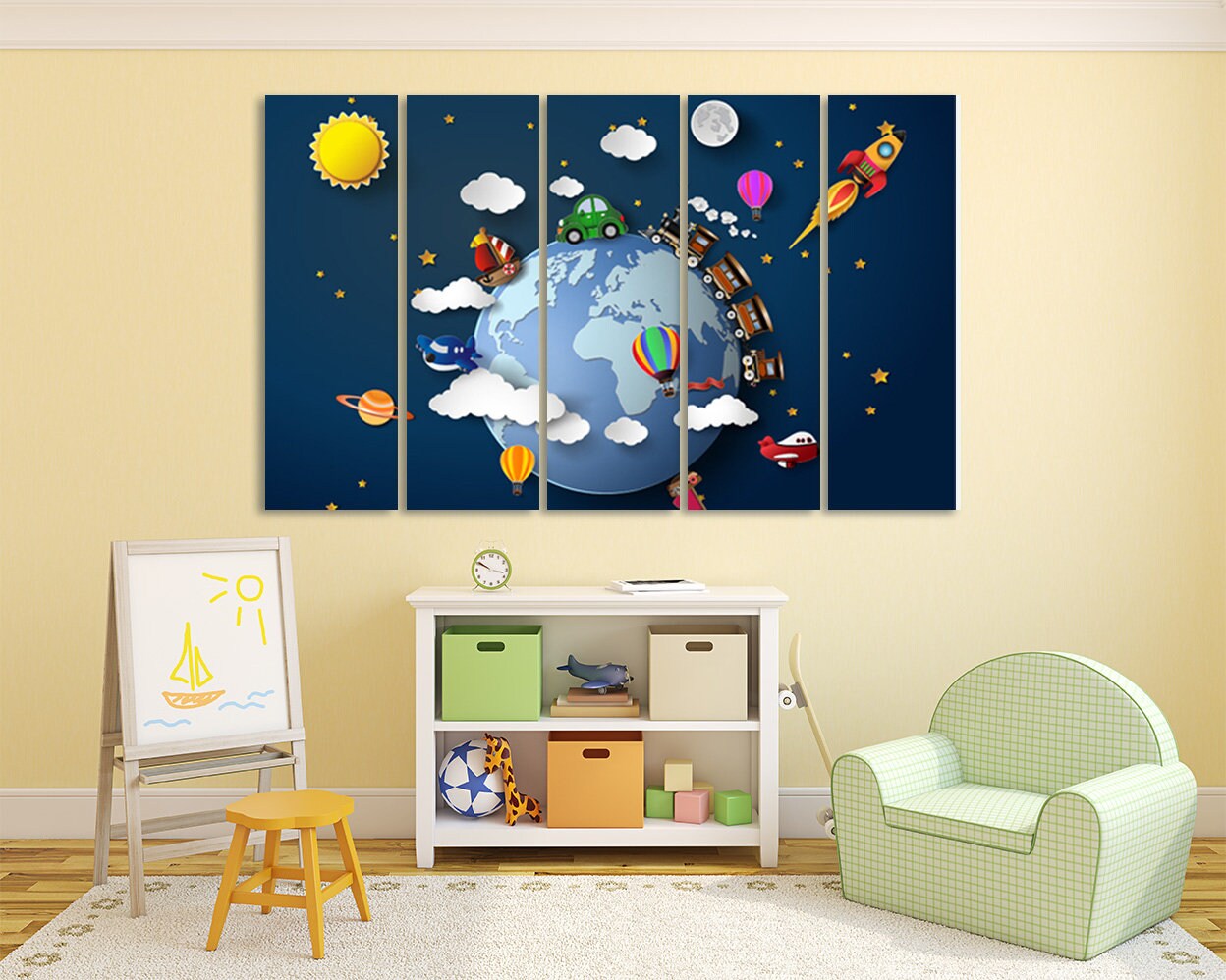 Kinderzimmer Weltraum Kinderzimmer Spielzimmer Wanddekoration Abenteuer Baby Kinder Wanddruck 3D Weltraum Kunst Leinwandbild extra groß Mehrteilige Leinwand