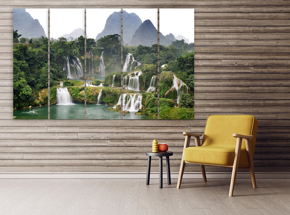 Landschafts-Wandbilder auf Leinwand, Wasserfall-Kunst, Natur-Wandkunst, Wohndekor, Leinwandgemälde, Walddruck, 3-, 4-, 5-teilige Leinwand