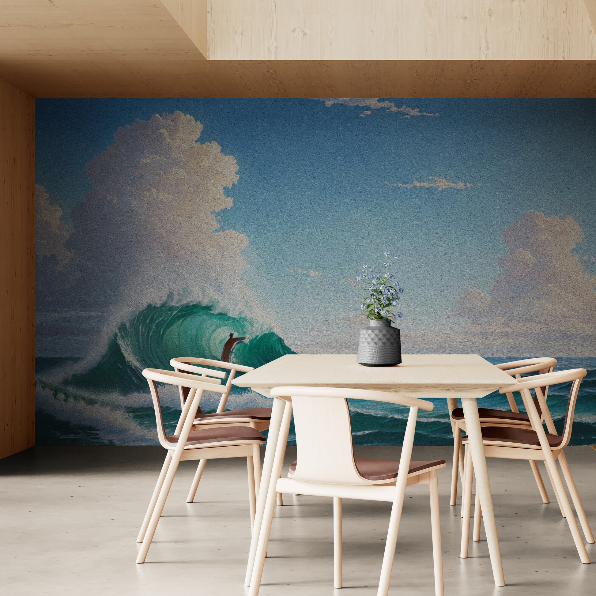 Extra große Meereslandschaftstapete, selbstklebendes Wandbild mit Wasser, temporäre blau-weiße Tapete, Tapete für Schlafzimmer