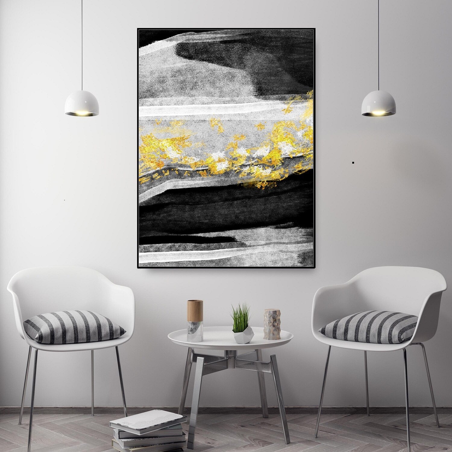 Großes abstraktes Wanddekor, schwebender Leinwanddruck, moderne schwarz-goldene Wandkunst, gerahmte Wohnzimmer-Wandkunst, abstraktes Kunstwerk
