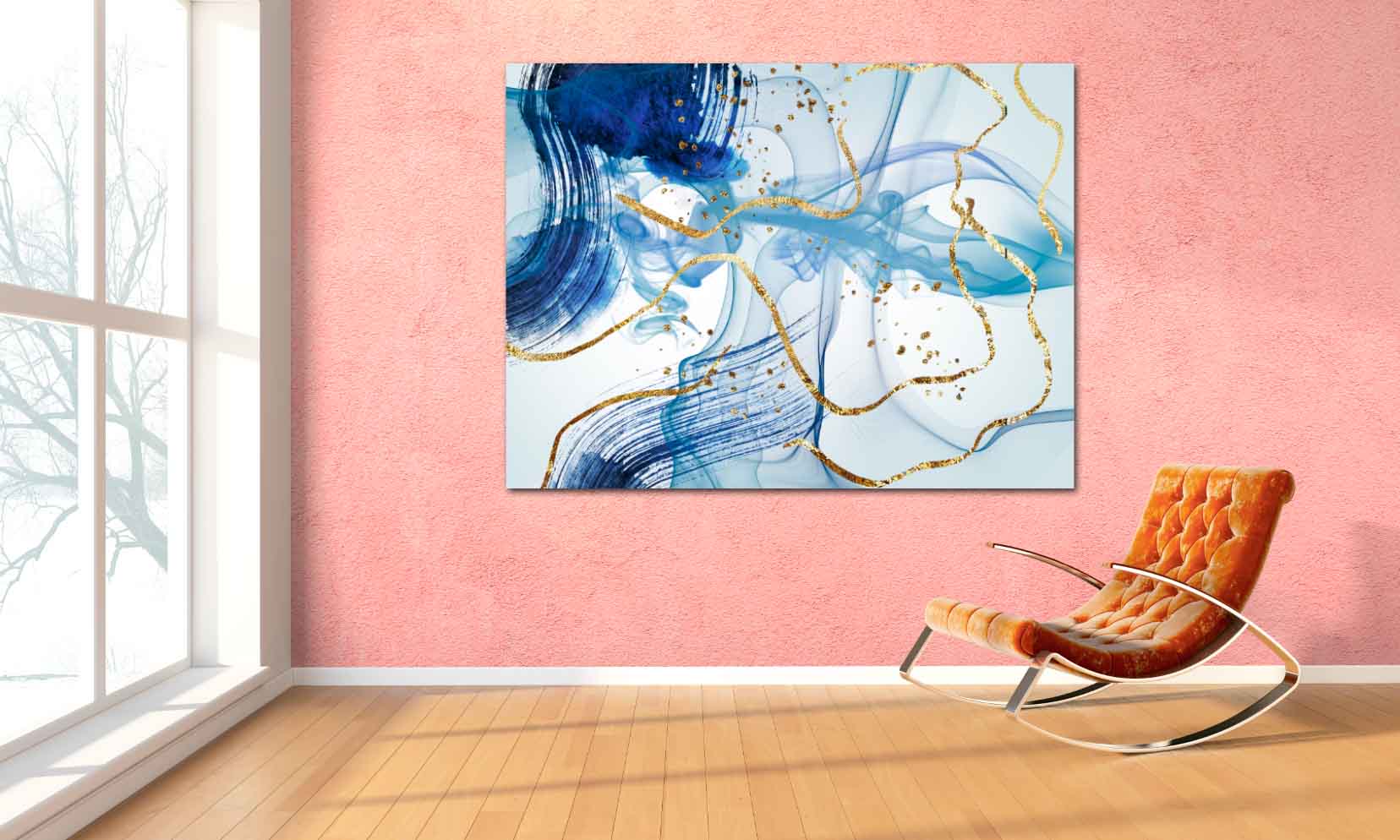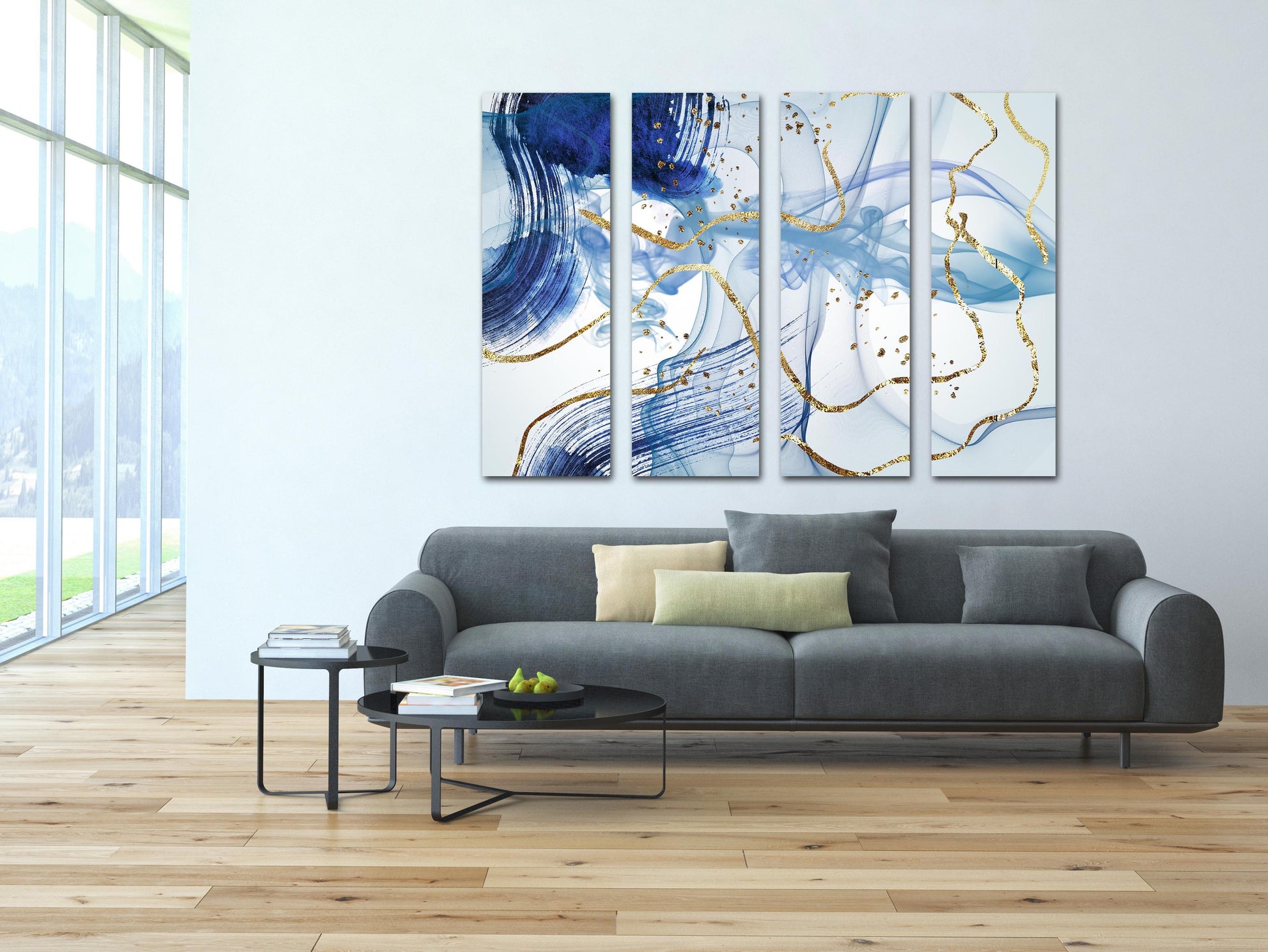 Großes abstraktes Gemälde in Blau und Gold, moderne abstrakte Kunst, mehrteilige Leinwand, Wandkunst, Leinwandgemälde, abstrakte Wandkunst, Heimwanddekoration