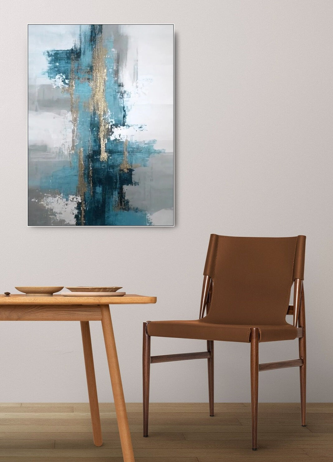 Große abstrakte Wandkunst, blauer Leinwanddruck mit schwebendem Rahmen, konzeptuelles Wanddekor zum Aufhängen, druckbares Wohnzimmerkunstwerk, modernes Geschenkwandkunstwerk
