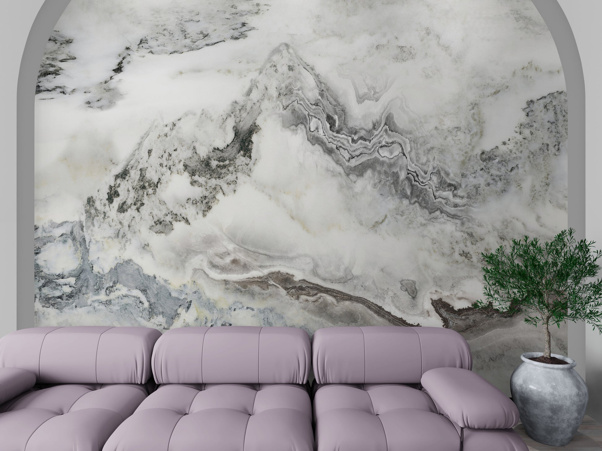 Schwarz-weißes Marmor-Tapeten-Wandbild, Abstrakte selbstklebende Tapete, Temporäres Akzent-Wandbild, Wandbild für Wohnzimmer, Abziehen und Aufkleben