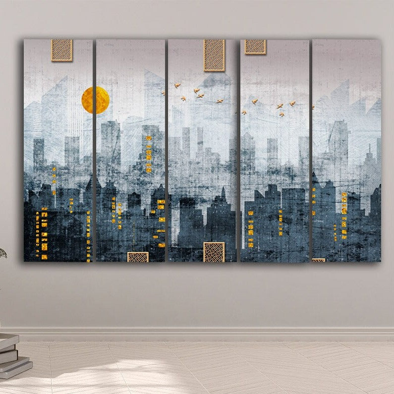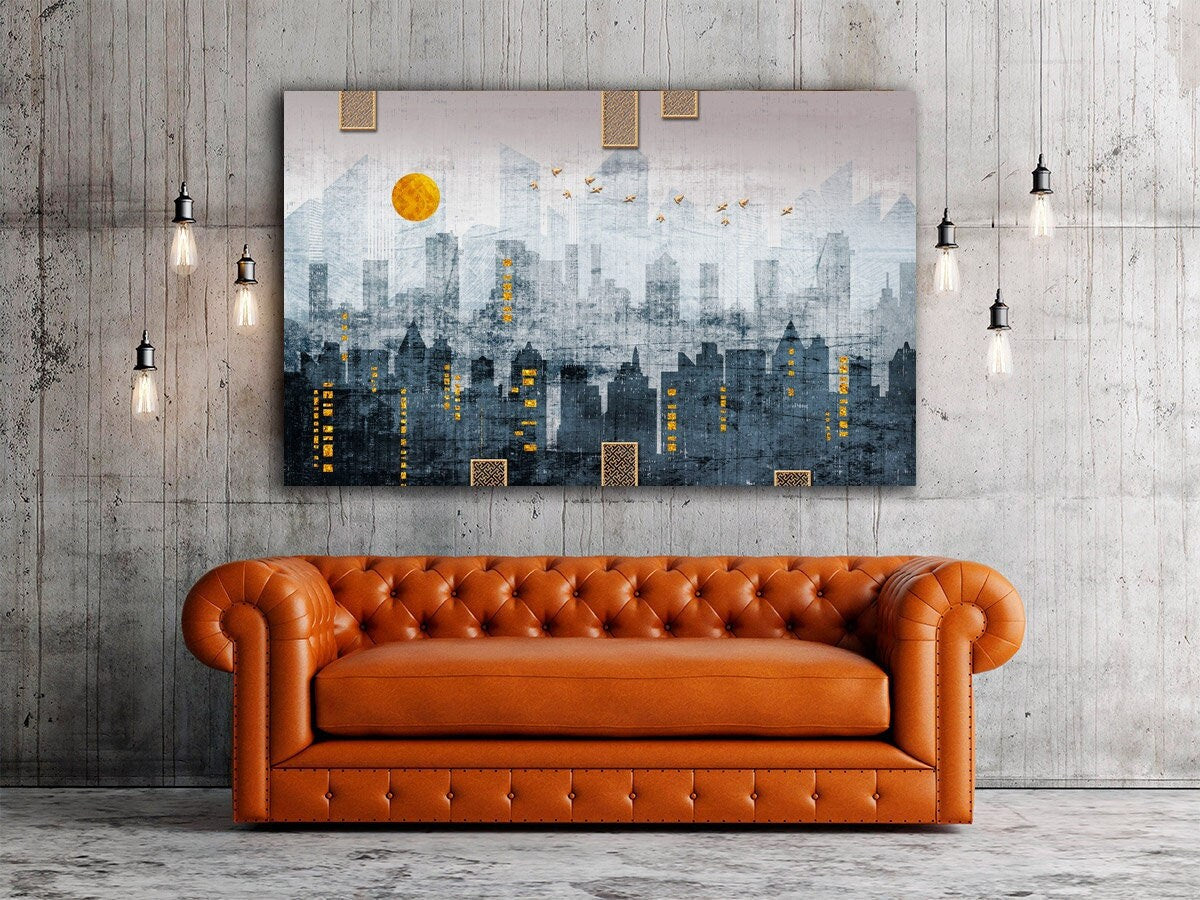Großes modernes Wandkunst-Poster „Stadt“ Architektur-Leinwandkunst, individuelles Heimgemälde, Badezimmer-Wanddekor, 3-teilige Wandkunst, 4-teilige, 5-teilige Leinwand