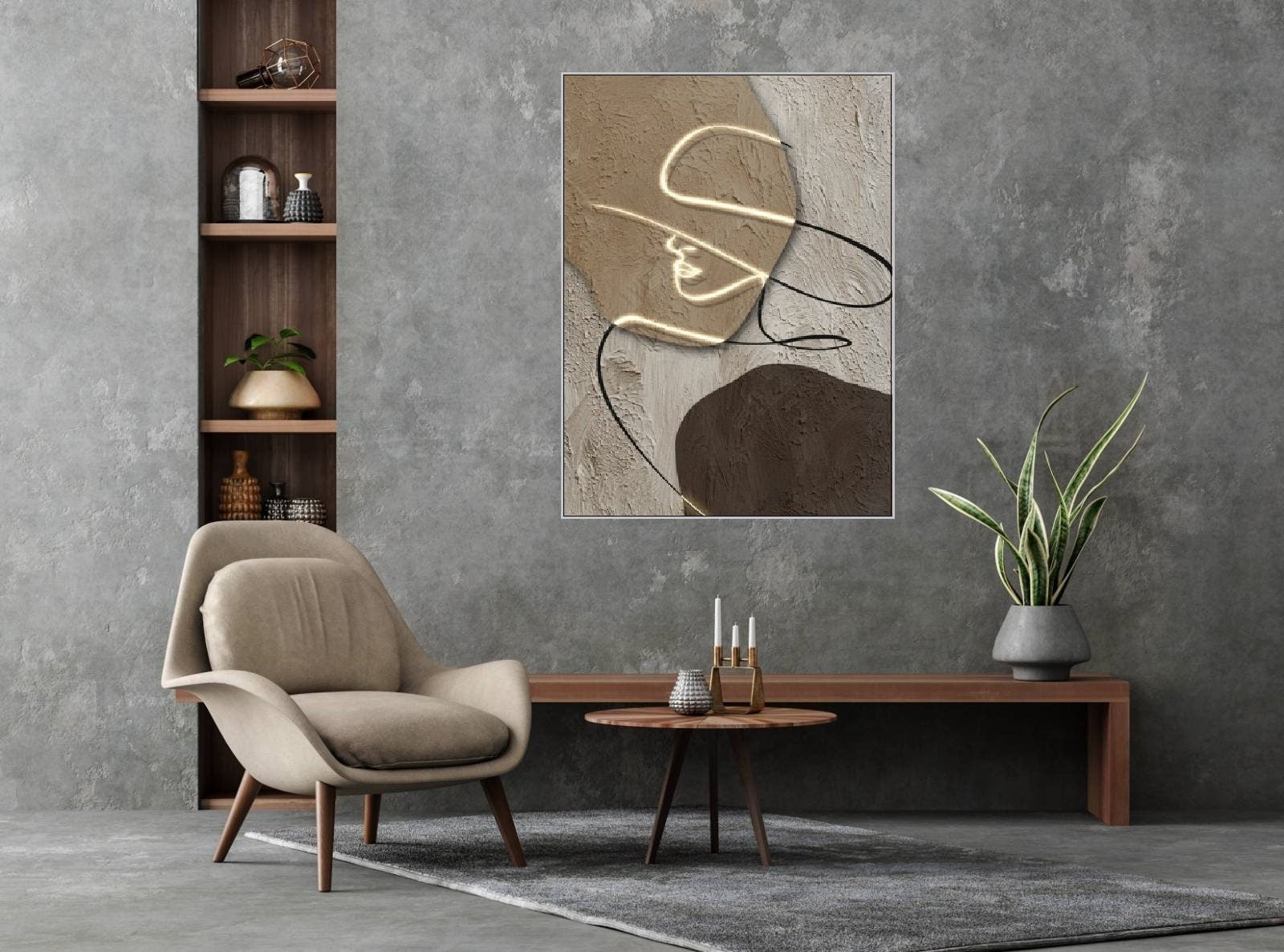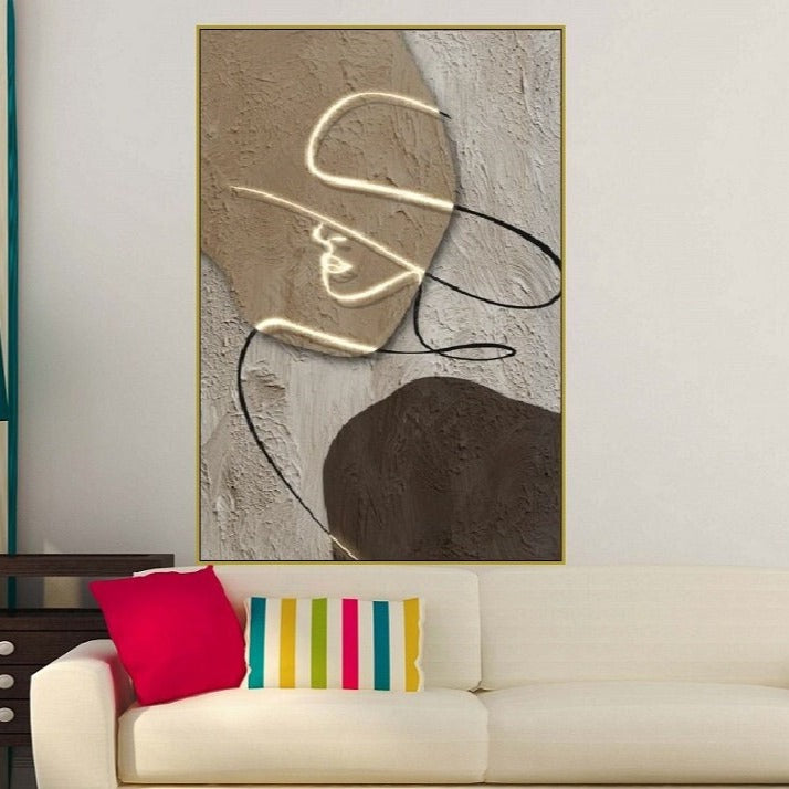 Große einzeilige Wandkunst, abstrakter Leinwanddruck mit schwebendem Rahmen, graubraune Wanddekoration zum Aufhängen, modisches vertikales Kunstwerk, Wandkunst für Wohnzimmer