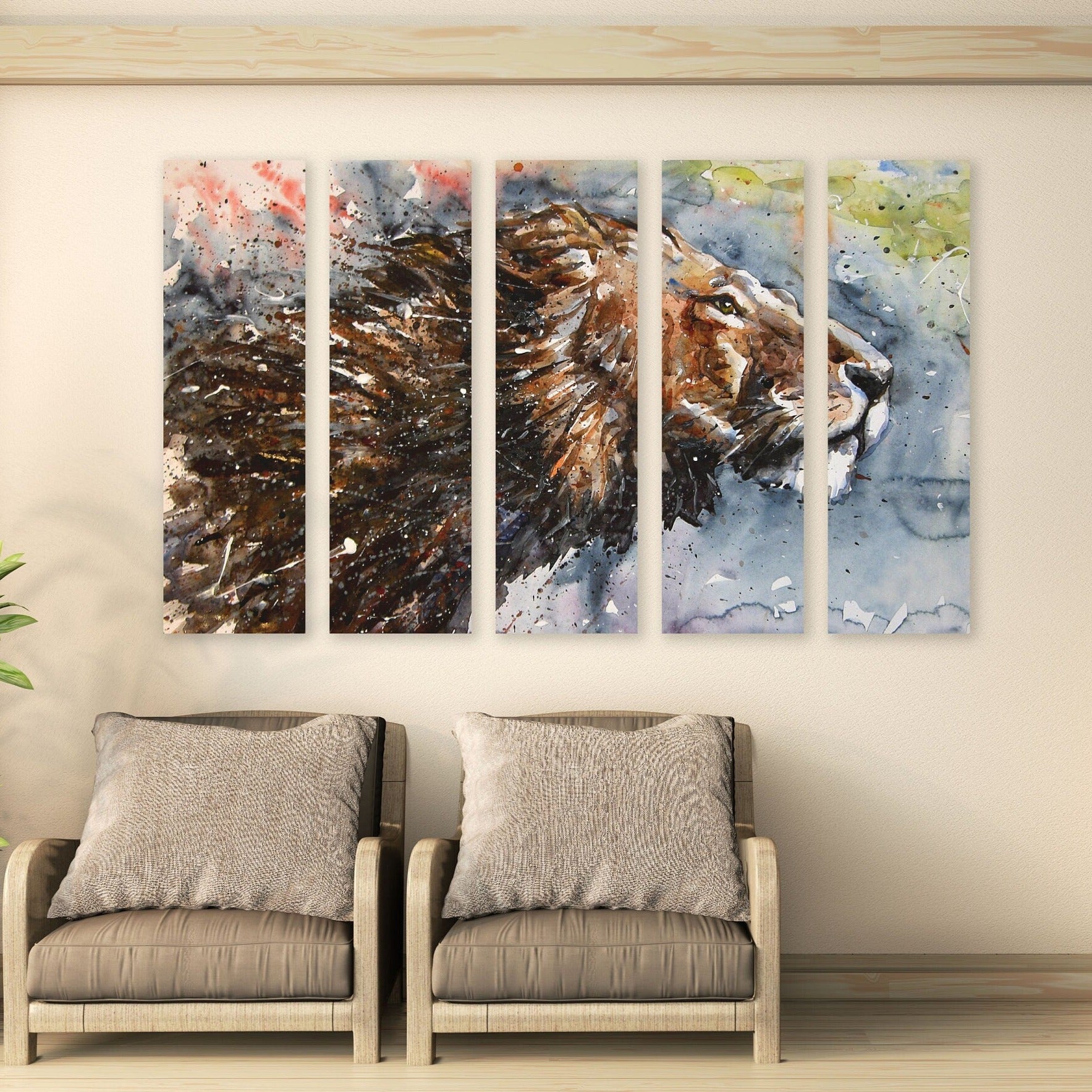 Löwe-Wandkunst, afrikanisches Tier-Leinwandbild, Löwenmähne, mehrteiliges extra großes Leinwandbild, Heimwanddekoration