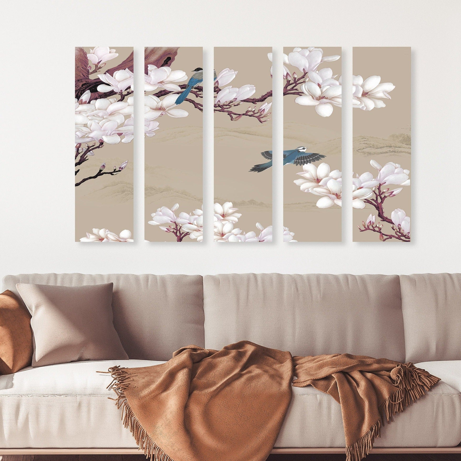 Magnoliengemälde, florale Wandkunst, japanische Wandkunst auf Leinwand, japanische Drucke, asiatische Wandkunst, riesige Wandkunst