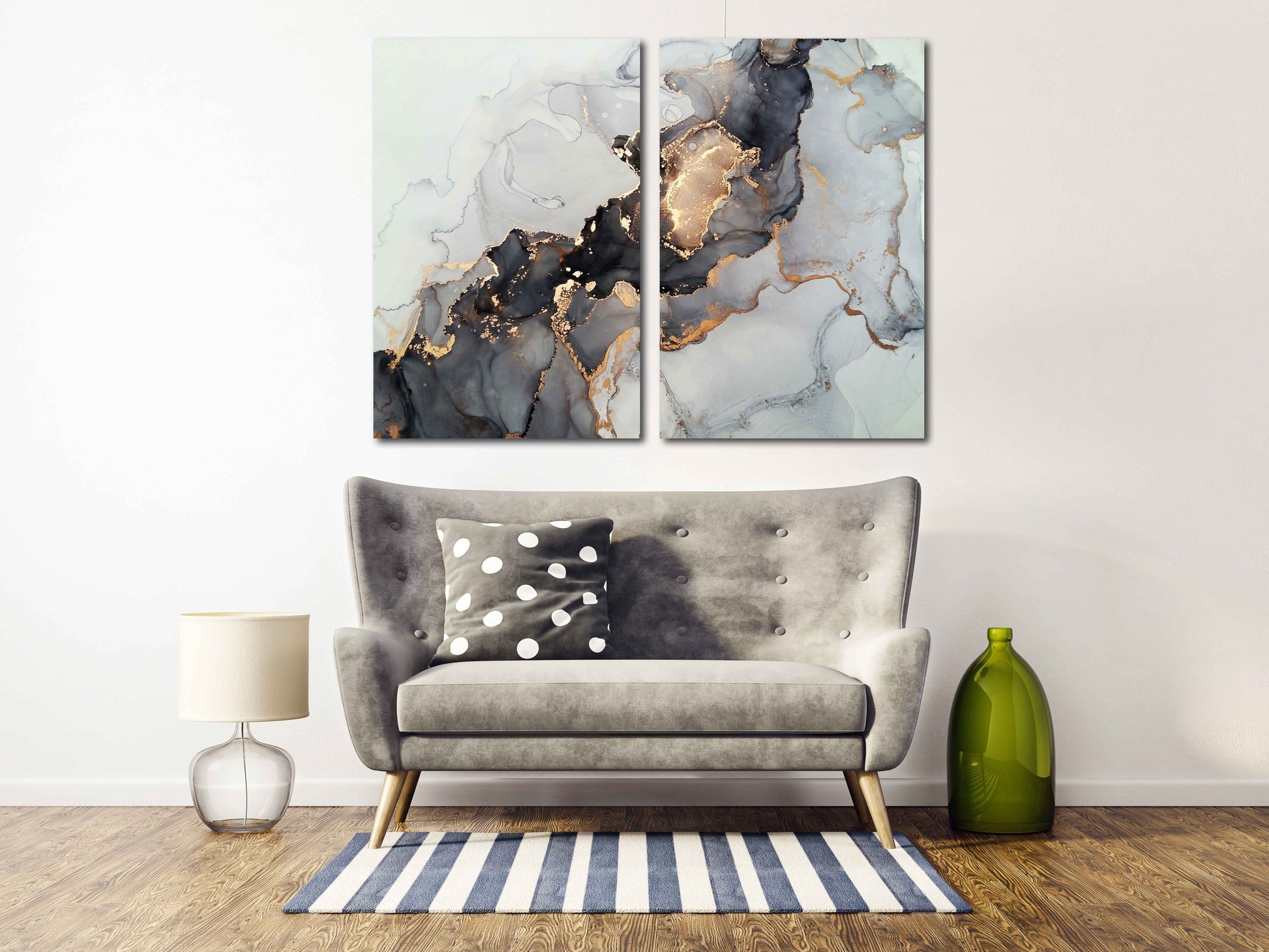 Marmor-Wanddekor, abstraktes Marmor-Leinwandbild, abstrakte Wandkunst in Gold und Schwarz auf Leinwand, mehrteiliges Wandbild auf Marmor-Leinwandbild