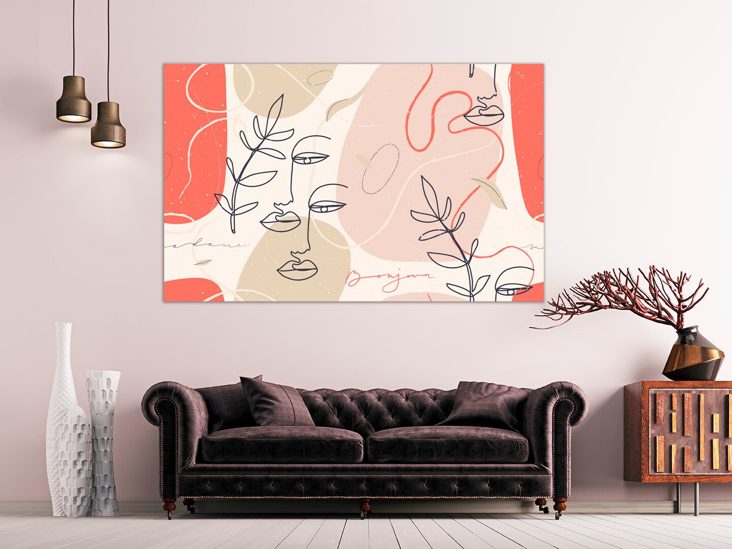 Minimalistische Linienkunst, Gesichtslinienkunst, Wanddekoration für Zuhause, Leinwandmalerei, Wohnzimmerkunst, große Wandkunst, 5-teilige Leinwand, Küchendekorwand
