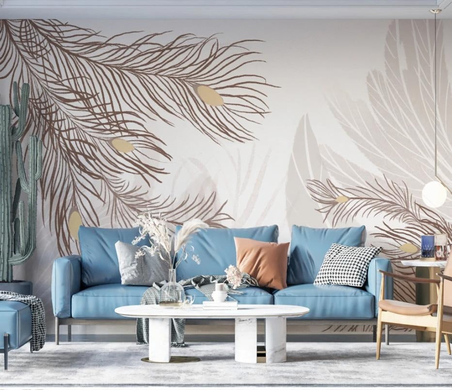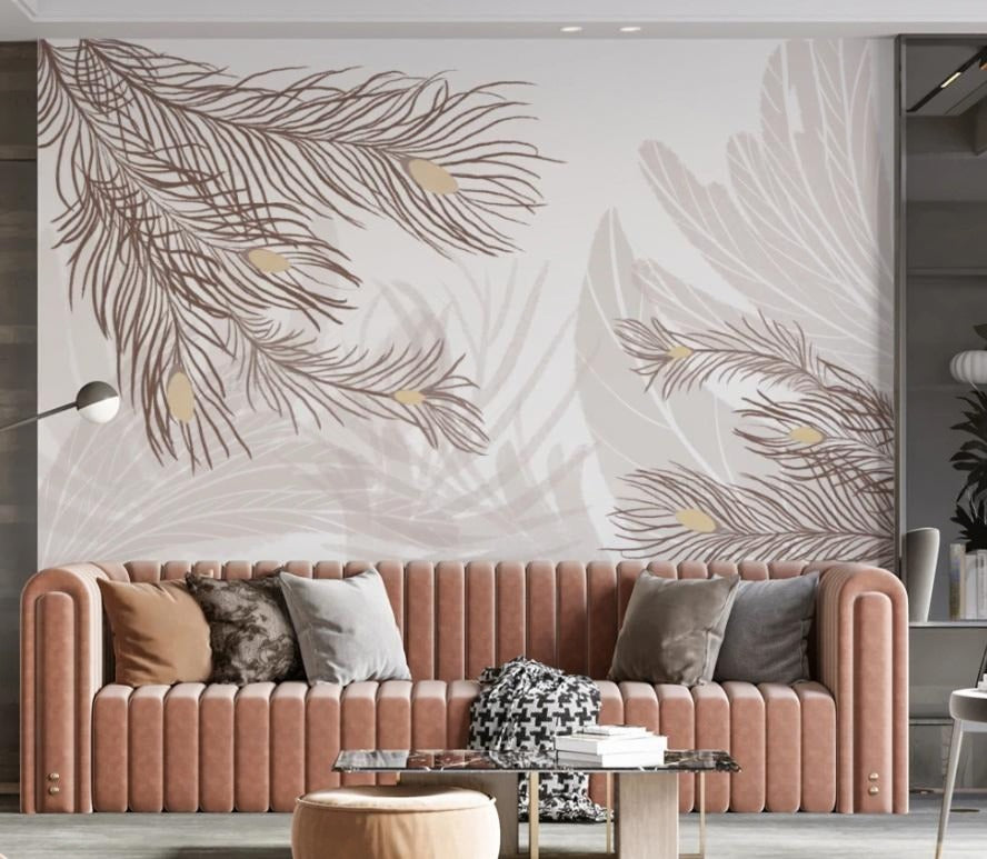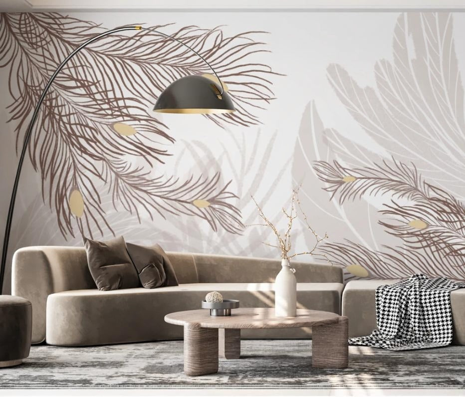 Abstrakte, neutrale Fototapete mit Federn „Federhauch“
