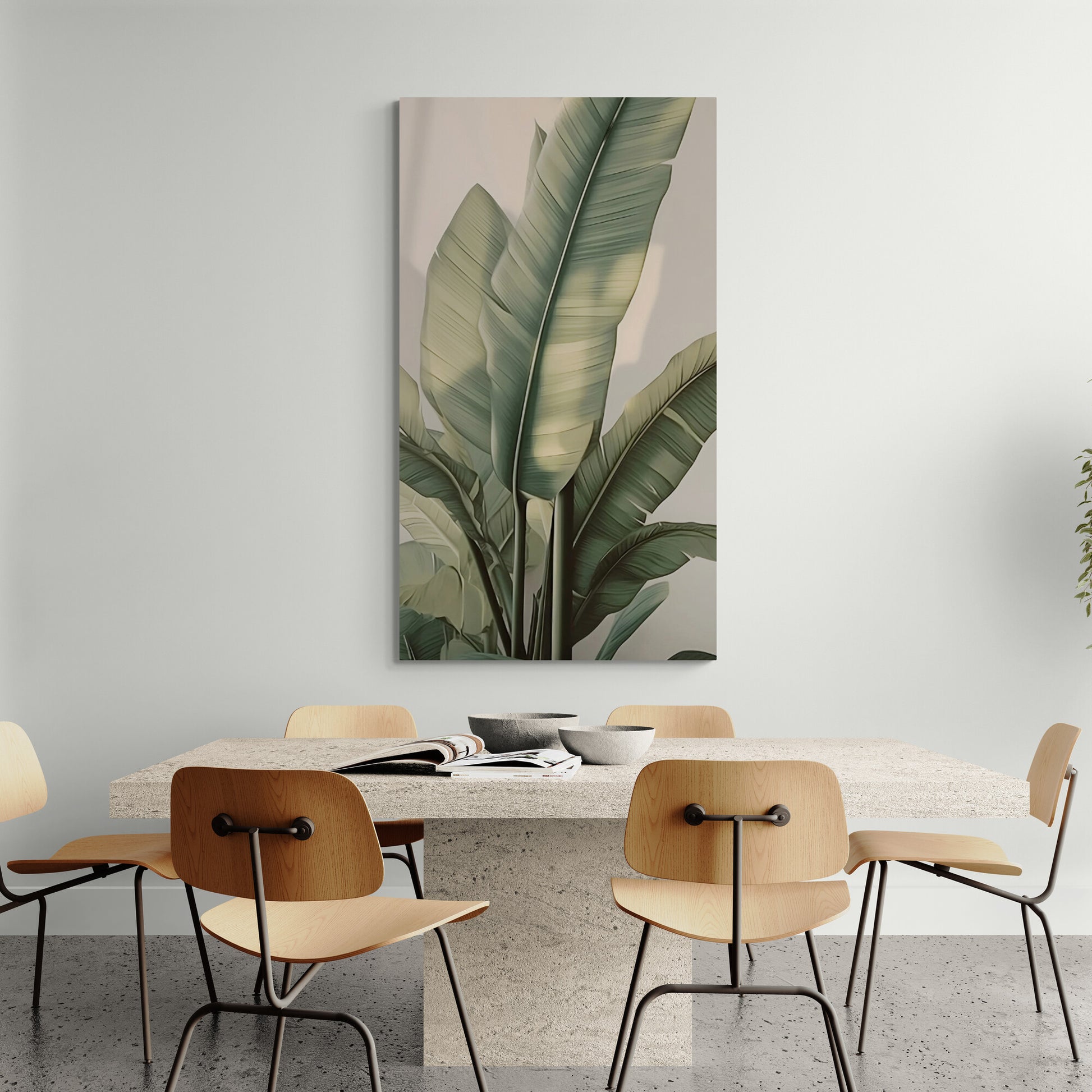 Botanischer Kunstdruck, Bananenblätter Leinwanddruck, gerahmtes Kunstwerk mit Kräutern, großes druckbares Kunstwerk mit Pflanzen, Wohnzimmer Wandkunst, Geburtstagsgeschenk
