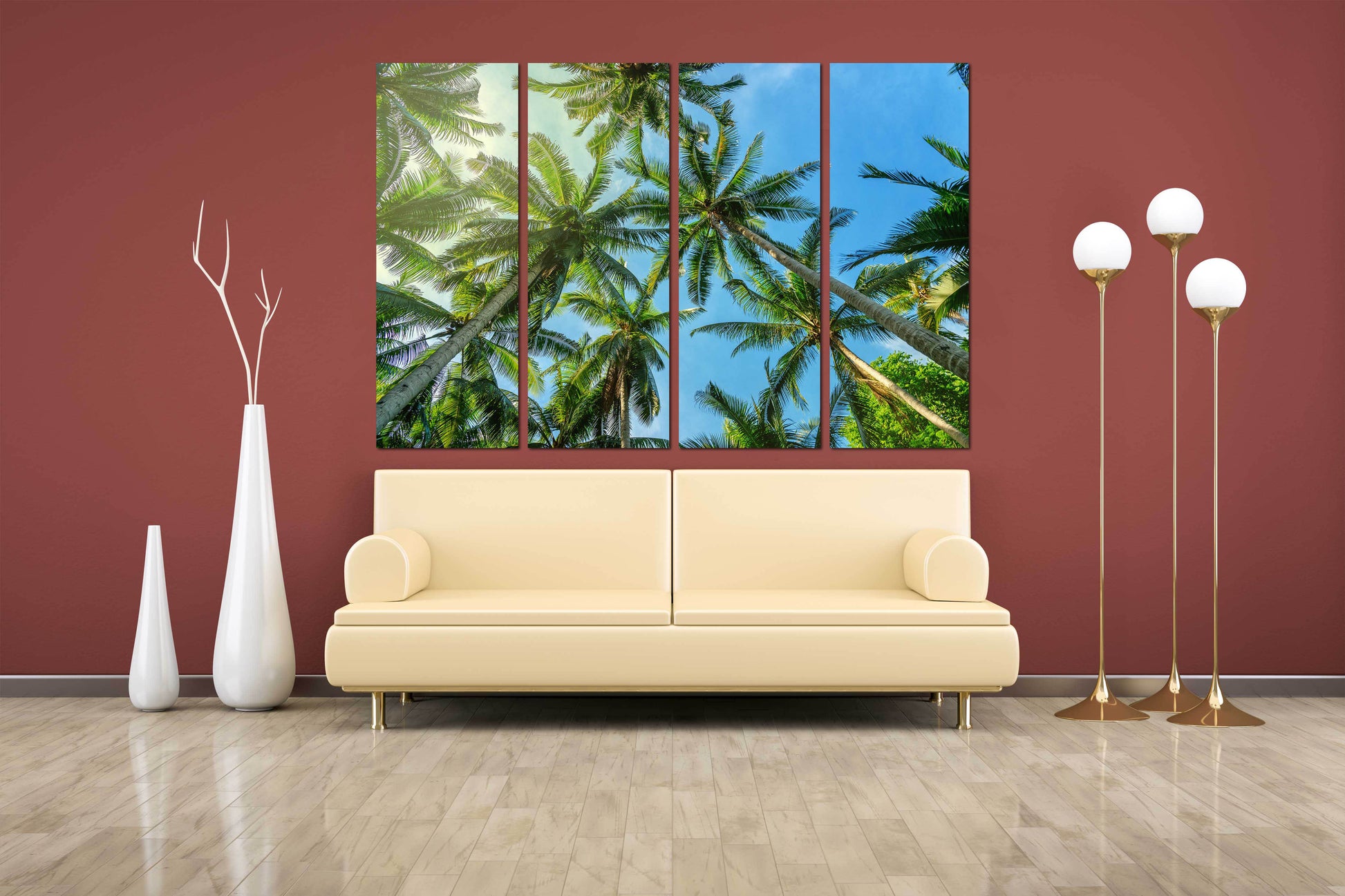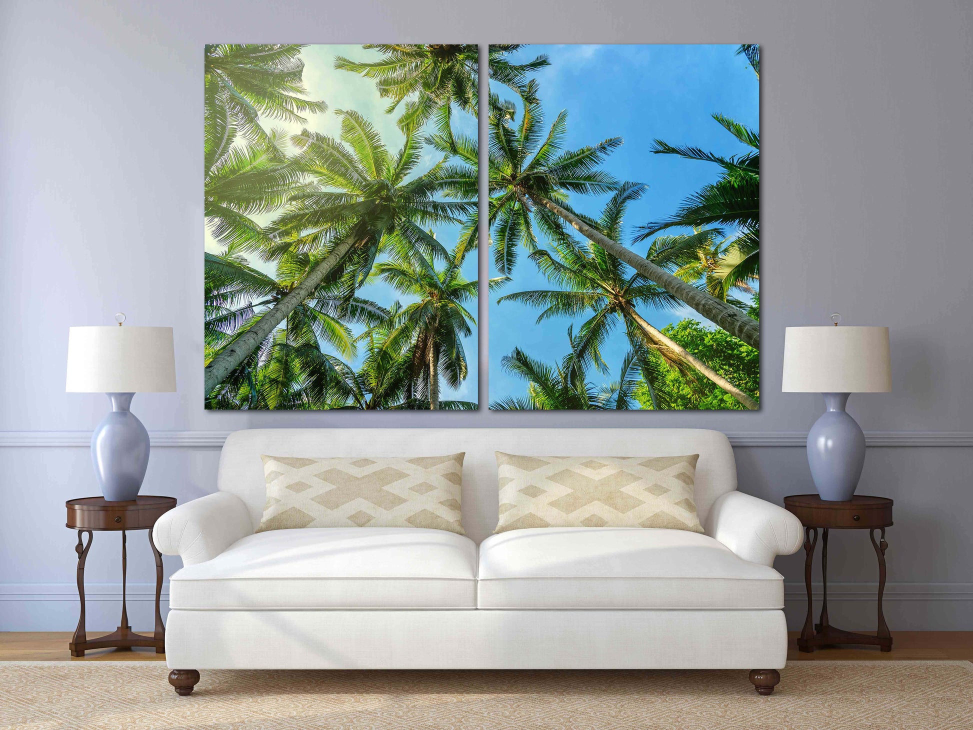 Palmen Wandkunst, Baumspitze Wandkunst, Baumzweig Druck, Home Wanddekoration, Leinwandgemälde, Mehrteilige Wandkunst, Palmblatt Wandkunst