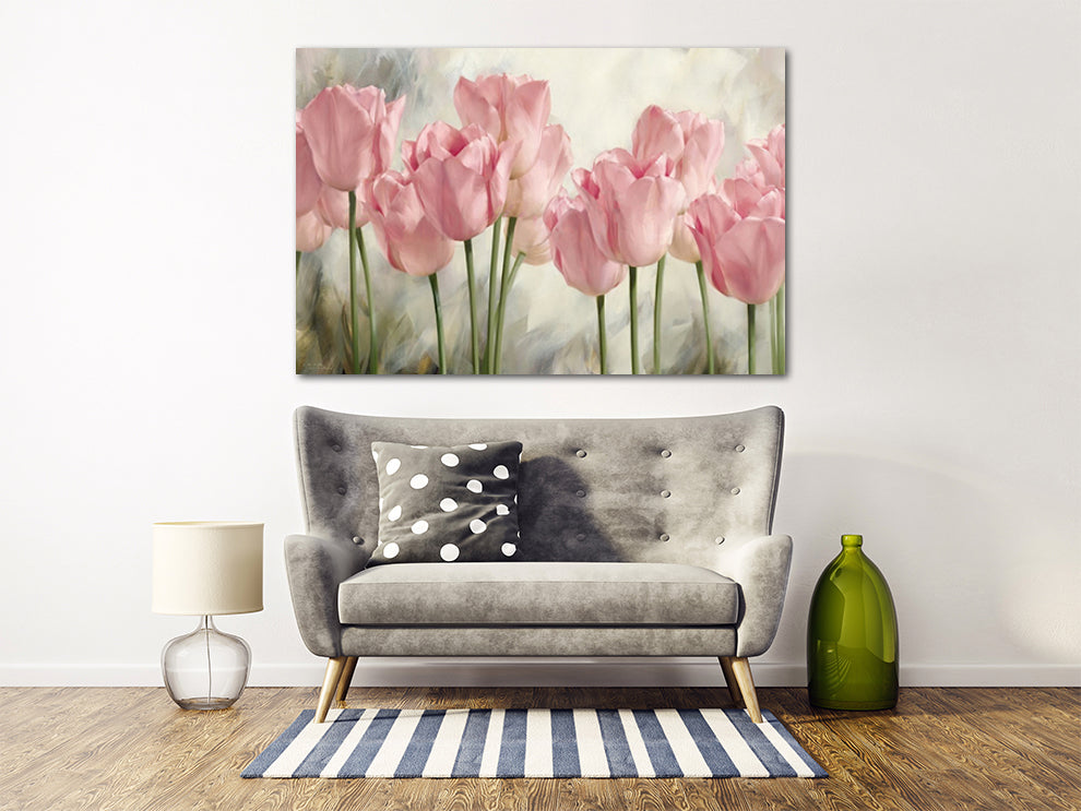 Rosa Tulpen, Blumen Wandkunst Gemälde auf Leinwand, Wohnwanddekoration, Leinwandgemälde, Wandbehang Dekor, Wandkunst für Schlafzimmer