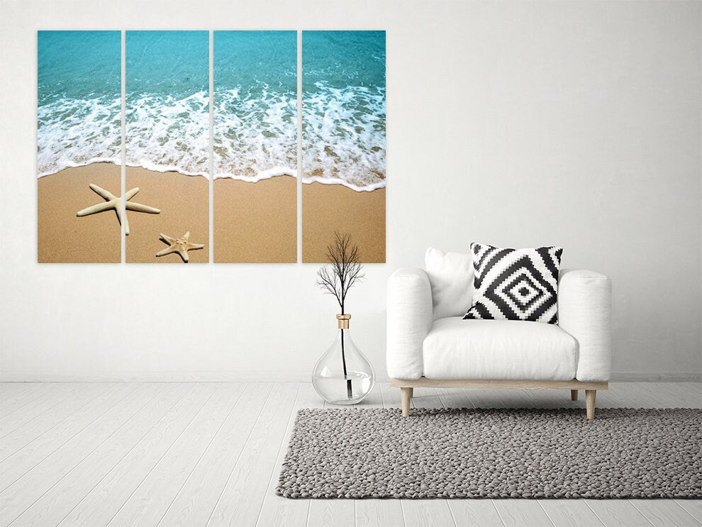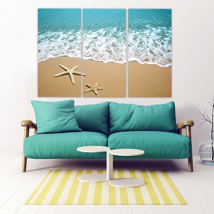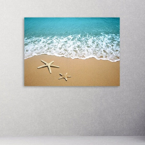 Meereslandschaft Gemälde, Natur Wandkunst Gemälde auf Leinwand, Seestern Wandkunst, Sonne Meer Sand, Meeresküste Drucke Strand Wand Dekor Leinwand Gemälde,