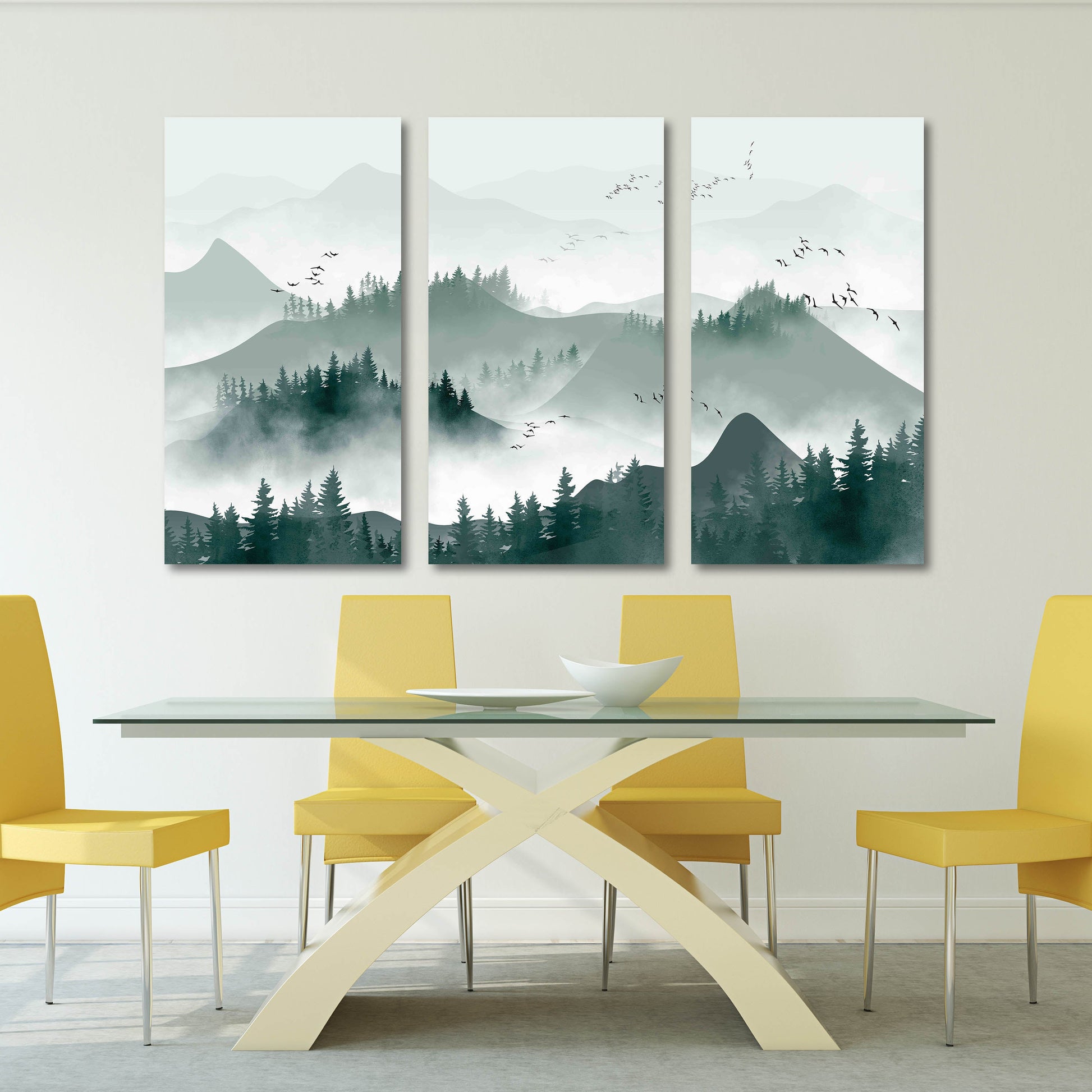 •Die Größe eines Gemäldesets, das aus mehreren Tafeln besteht, wird berechnet, indem die Tafeln zusammengezählt werden. Es wird empfohlen, solche Sets mit einem Abstand von 1–2 Zoll zwischen den Tafeln an der Wand anzubringen. Je größer die Bildelemente, desto größer ist der zulässige Abstand zwischen ihnen.