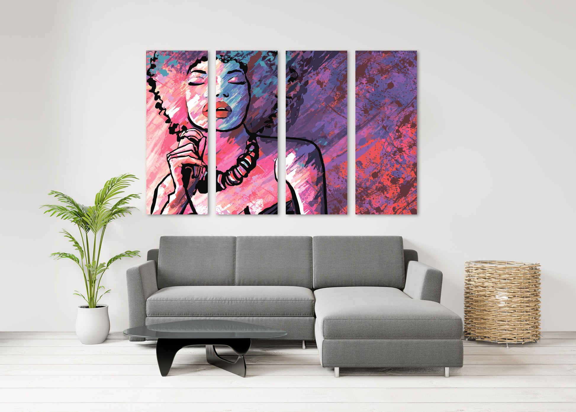 Trendy Schwarze Afrofrau Leinwand Wandkunst Afroamerikaner helle Wandkunst Multi Panel extra großes Leinwandbild