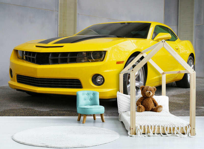 Extra große Tapete mit gelbem Auto, Abzieh- und Klebetapete für Jungenzimmer, Kinderzimmer-Wandverkleidung, temporäre Tapete