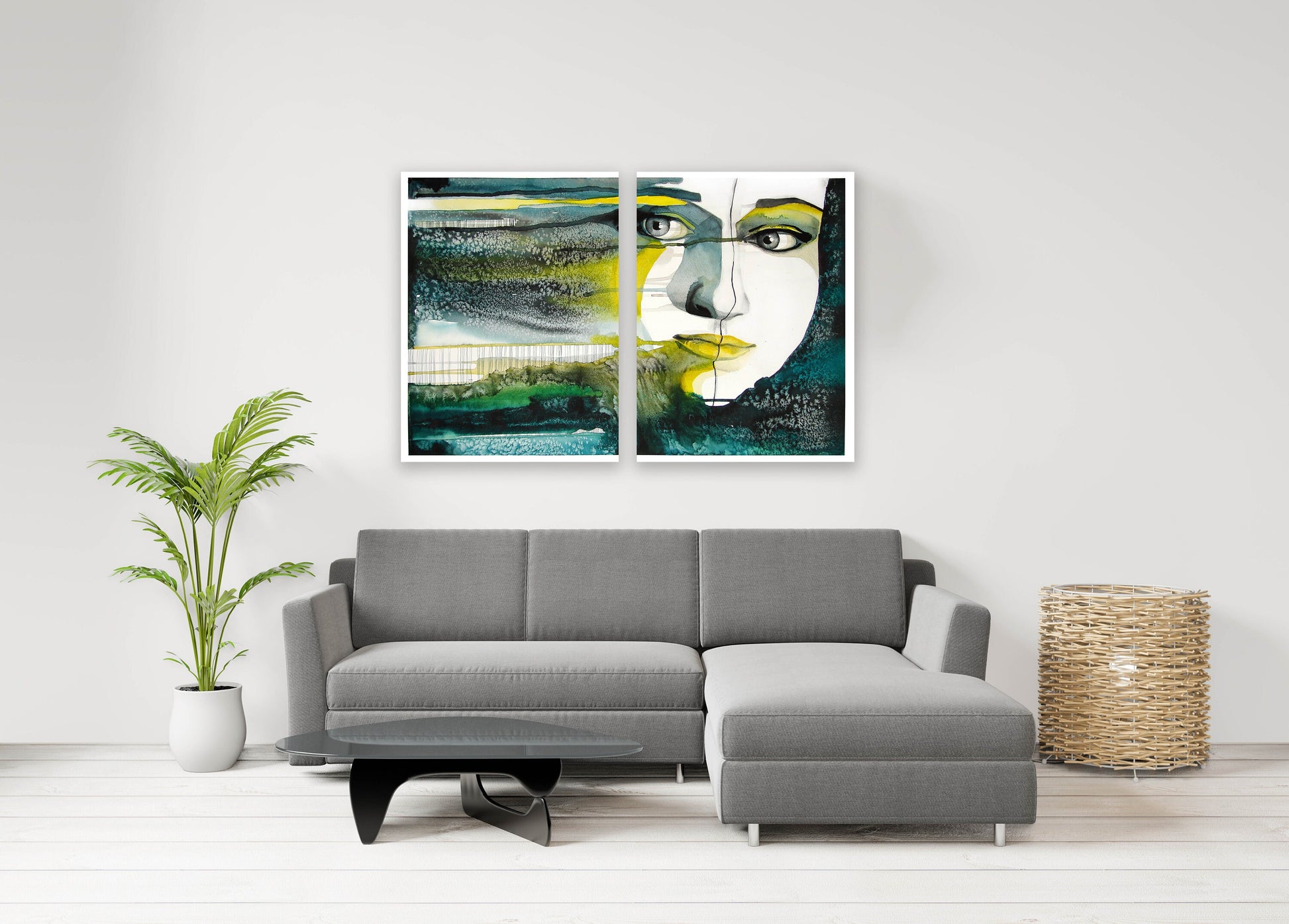 Frauengesichter Wandkunst, abstraktes Frauengesichtsposter, Frauengesichtsmalerei, extra große Leinwandwandkunst